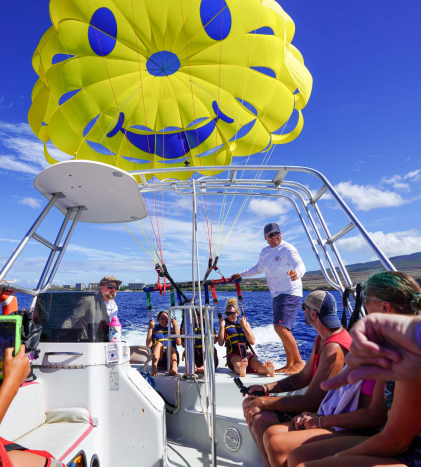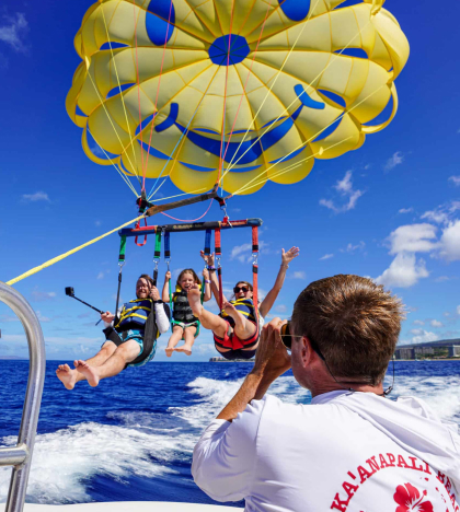 Got a taste for adventure? Come and join us and experience a thrilling Parasail Flight over Kā‘anapali Beach, HI! Take to the air with our 1,200 ft parasailing flight! Ages 5 and over are all welcome. Enjoy the incredible views of Kā‘anapali Beach.